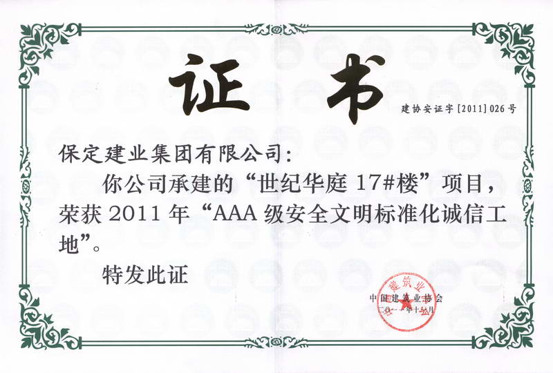 世紀(jì)華庭17樓全國(guó)3A級(jí)安全文明...