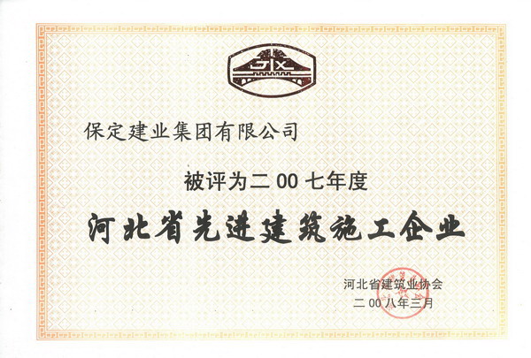 2007年河北省先進(jìn)建筑施工企業(yè)