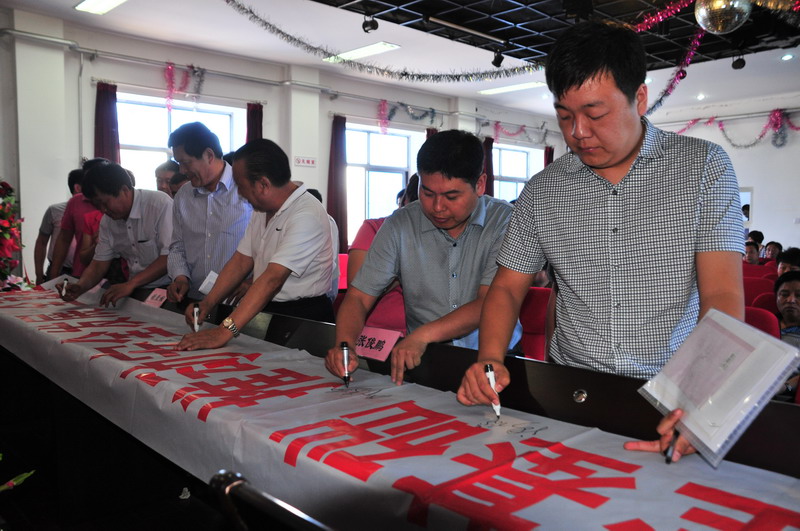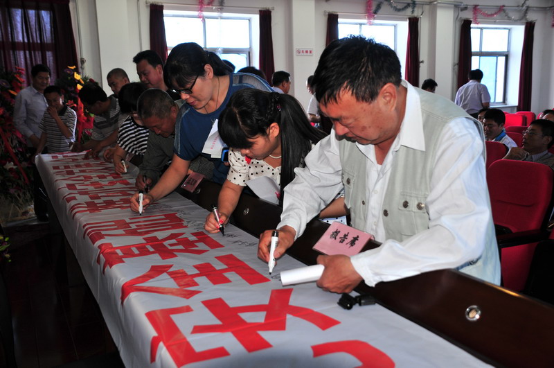 參會人員在“強(qiáng)化安全基礎(chǔ),推動安全發(fā)展,全面推行標(biāo)準(zhǔn)化”條幅上簽字