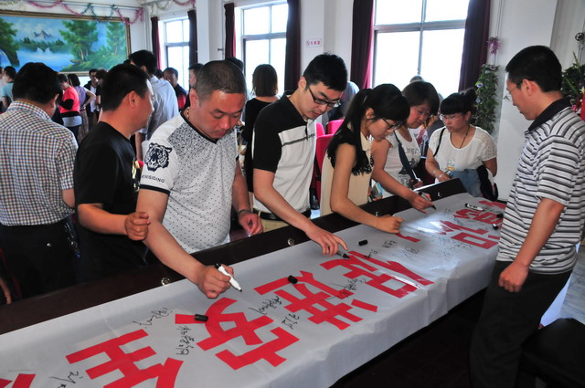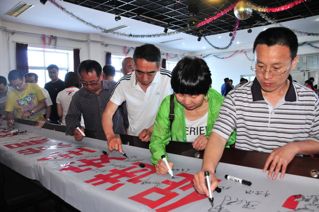 參會(huì)人員在“強(qiáng)化紅線意識(shí),促進(jìn)安全發(fā)展,落實(shí)安全規(guī)章”條幅上簽字。